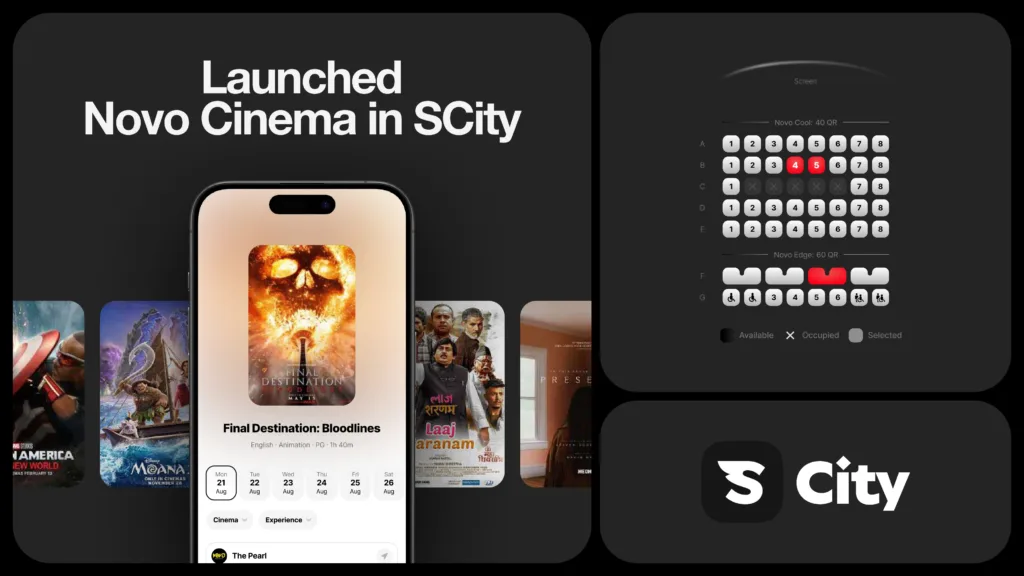 Open Snoonu, Go to SCity, pick your film, choose your seats, pay, done.
