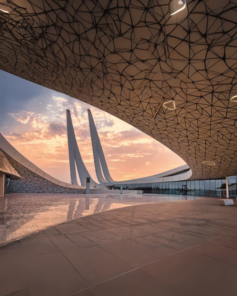 Located in Education City, this mosque is a masterpiece of Islamic architecture, adorned with Qur’anic verses and intricate calligraphy. Visiting just before sunset gives you the chance to see the building bathed in golden light, truly a photographer’s dream.
