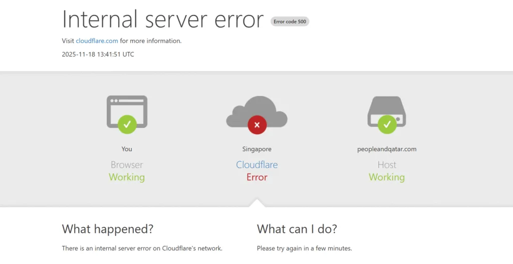 If you are repeatedly encountering “500 Internal Server Error” messages today, you are not alone. The issue originates from Cloudflare’s backbone infrastructure and is not related to your device or internet connection.
