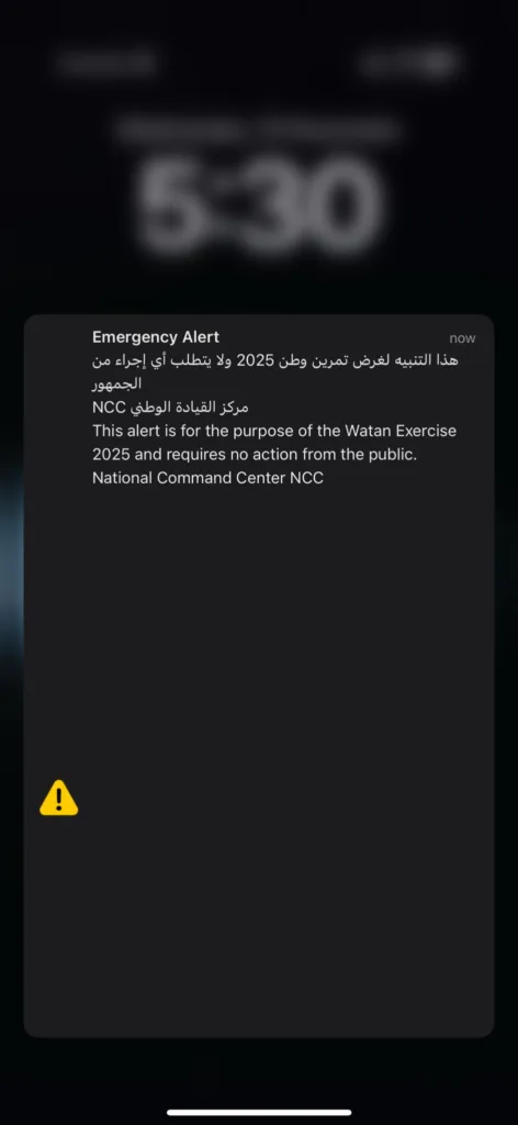 Residents across Qatar received an unexpected emergency alert today, but there is no cause for concern. The notification was a planned nationwide test conducted under Watan Exercise 2025, according to the National Command Center (NCC).