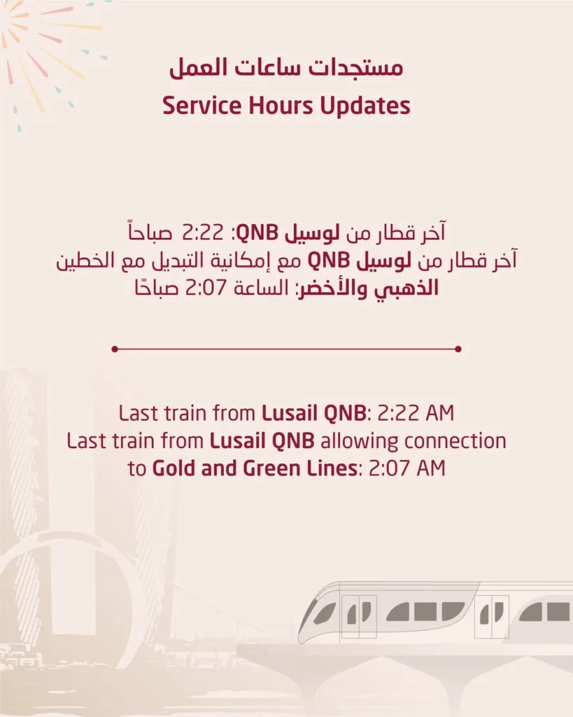 The Doha Metro will operate extended hours on 31 December 2025 to support visitors attending the New Year’s Eve celebrations at Lusail Boulevard.
