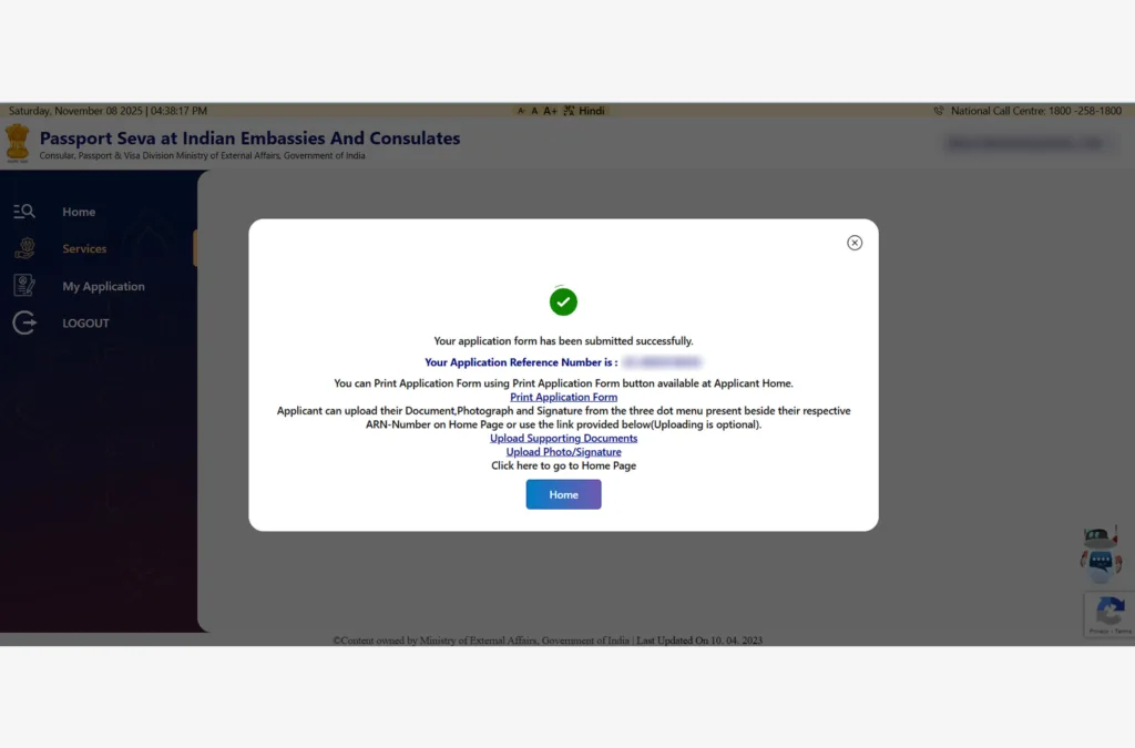 After submission, you will receive your Application Reference Number (ARN).