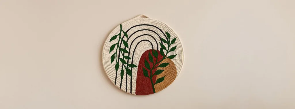 Create a macrame and painted artwork on a wooden base using ropes and colour. Suitable for beginners.