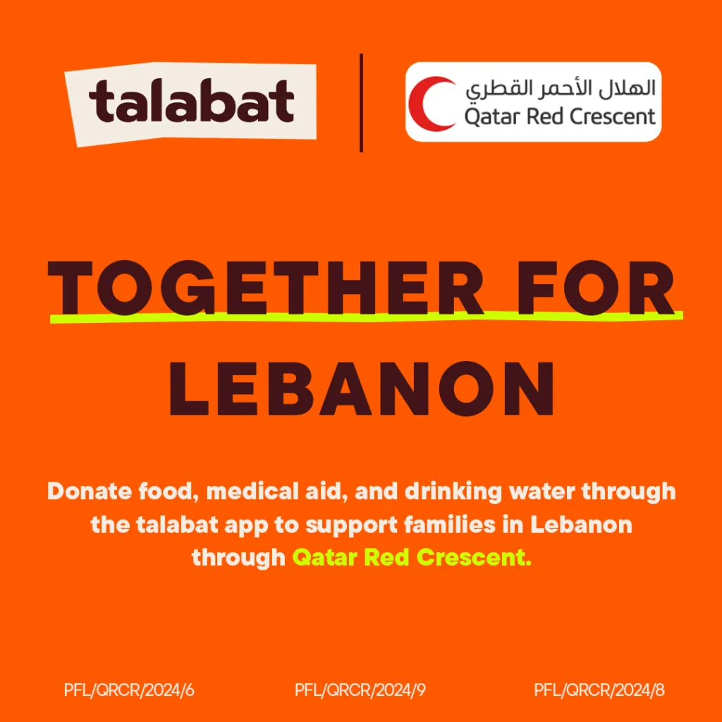 talabat, the leading on-demand delivery platform in the MENA region, has partnered with Qatar Red Crescent Society (QRCS), its trusted and licensed local charity partner to provide emergency relief efforts in Lebanon through in-app donations.